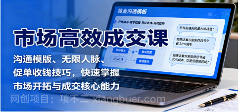 这门课程聚焦市场成交全流程,汇聚多位实战教练干货分享。涵盖郝涵教练沟通模板、无限人脉获取技巧、系统成交方法,还有锦晟教练促单收钱、百合老师促升级等实战策略。同时包含促单对话截图制作教程,以及渝翔、少卿、柯林等老师的出单经验复盘,更有“让哑巴开口说话”的客户激活技巧。从认知觉醒到实操落地,助力学员快速掌握市场开拓与成交核心能力。