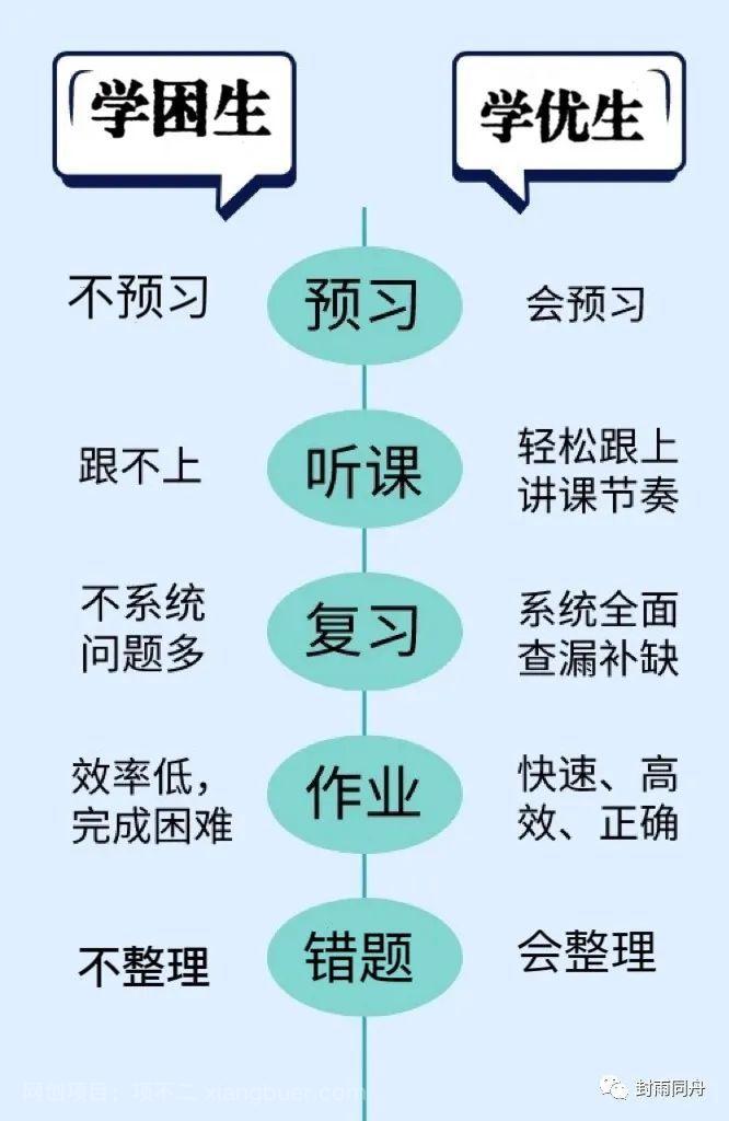 看看中等生和学困生们!他们除了每天听课和完成作业,其他三个学习环节(即课前预习,及时复习和错题整理)基本没有。