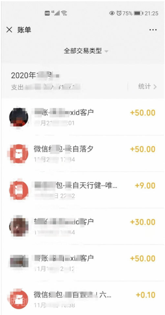 由于是第一次做,我选了一个保守的价格,50元转化一次,而且每一个微信号我都亲自测试一遍。结果出乎我的想象,只是业余接单的情况下,一天收入能超过2000块钱。而且由于今天的收款太频繁,直接把我的微信号给干异常了,最后没办法又用支付宝收了个700的;