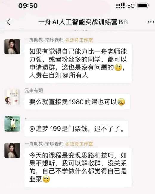 其实李一舟的课程还可以,虽然课程有广告,但总体来说质量还行。而且确实给很多人普及了AI知识,而且199元的课程收费并不贵。你看,哪些买过课程的售后不多,反倒是没买过课程的在网上调侃的最欢了。