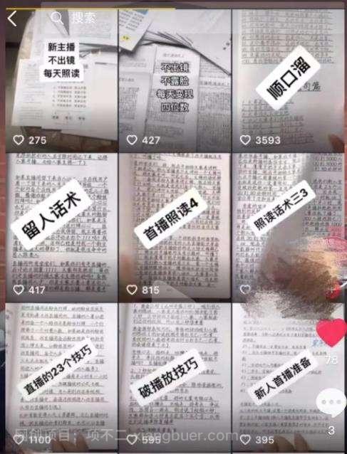 但是他卖资料的手法很奇特,他是把那些所谓的抖音运营资料,去打印店全部打出来,每个视频的内容就是拍摄去打印店打印出来的手稿。