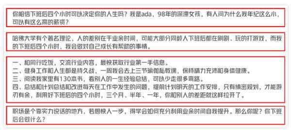 第三段则是典型的价值输出部分,就是把自己是如何拿到高工资的方法,讲述了出来,有理有据,最为关键的是还有逻辑性。