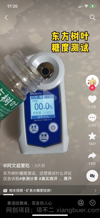 在下面的视频中,使用一个测糖度的仪器来测量饮料的糖度,