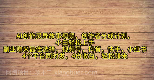 今天给大家带来的项目是《AI创作灵异故事视频,创作者分成,2024年灵异故事爆流量,小白轻松上手,副业的绝佳选择,轻松月入过万》